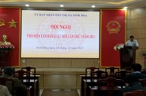 Triển khai thực hiện kế hoạch công tác phổ biến, giáo dục pháp luật của thị xã Ninh Hòa năm 2021, ngày 16/12/23021, UBND thị xã Ninh Hòa tổ chức Hội nghị giới thiệu các văn bản luật mới lần thứ 4 năm 2021.