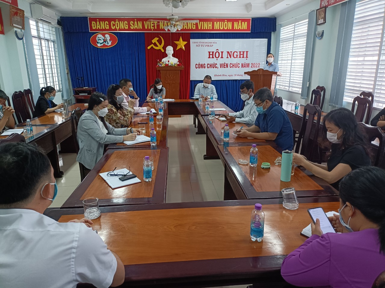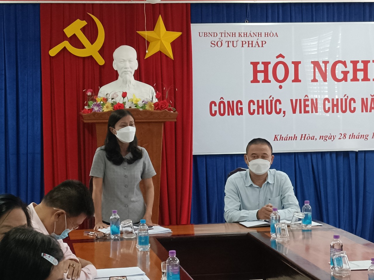 Ngày 28/12/2021, chính quyền cơ quan Sở Tư pháp phối hợp Công đoàn cơ sở Sở Tư pháp tổ chức Hội nghị công chức, viên chức năm 2022. Tham dự Hội nghị có tập thể Ban Giám đốc Sở, Ban Chấp hành Công đoàn Sở cùng các tổ trưởng tổ công đoàn tại các đơn vị thuộc, trực thuộc Sở. Đồng chí Nguyễn Thị Lan Phương – Tỉnh ủy viên, Bí thư Đảng ủy, Giám đốc Sở Tư pháp và đồng chí Đặng Văn Khánh – Phó Bí thư Đảng ủy, Phó Giám đốc Sở, Chủ tịch Công đoàn cơ sở Sở Tư pháp đồng chủ trì Hội nghị.