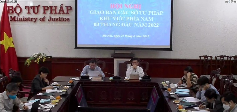 Chiều ngày 21/4/2022, Cục Công tác phía Nam (Bộ Tư pháp) tổ chức Hội nghị trực tuyến giao ban các Sở Tư pháp khu vực phía Nam 03 tháng đầu năm 2022 với 01 điểm cầu tại Bộ Tư pháp, 01 điểm cầu tại Cục Công tác phía Nam và 25 điểm cầu tại các tỉnh, thành phố trực thuộc Trung ương khu vực phía Nam. Chủ trì Hội nghị có các đồng chí: Mai Lương Khôi, Ủy viên Ban Cán sự, Thứ trưởng Bộ Tư pháp; Nguyễn Thanh Bình – Cục trưởng Cục Công tác phía Nam. Tại điểm cầu Bộ Tư pháp có sự tham dự của các đồng chí là Trưởng, Phó các đơn vị thuộc Bộ. Tại các điểm cầu 25 tỉnh, thành phố trực thuộc Trung ương có các đồng chí Giám đốc, Phó giám đốc Sở Tư pháp chủ trì các điểm cầu.