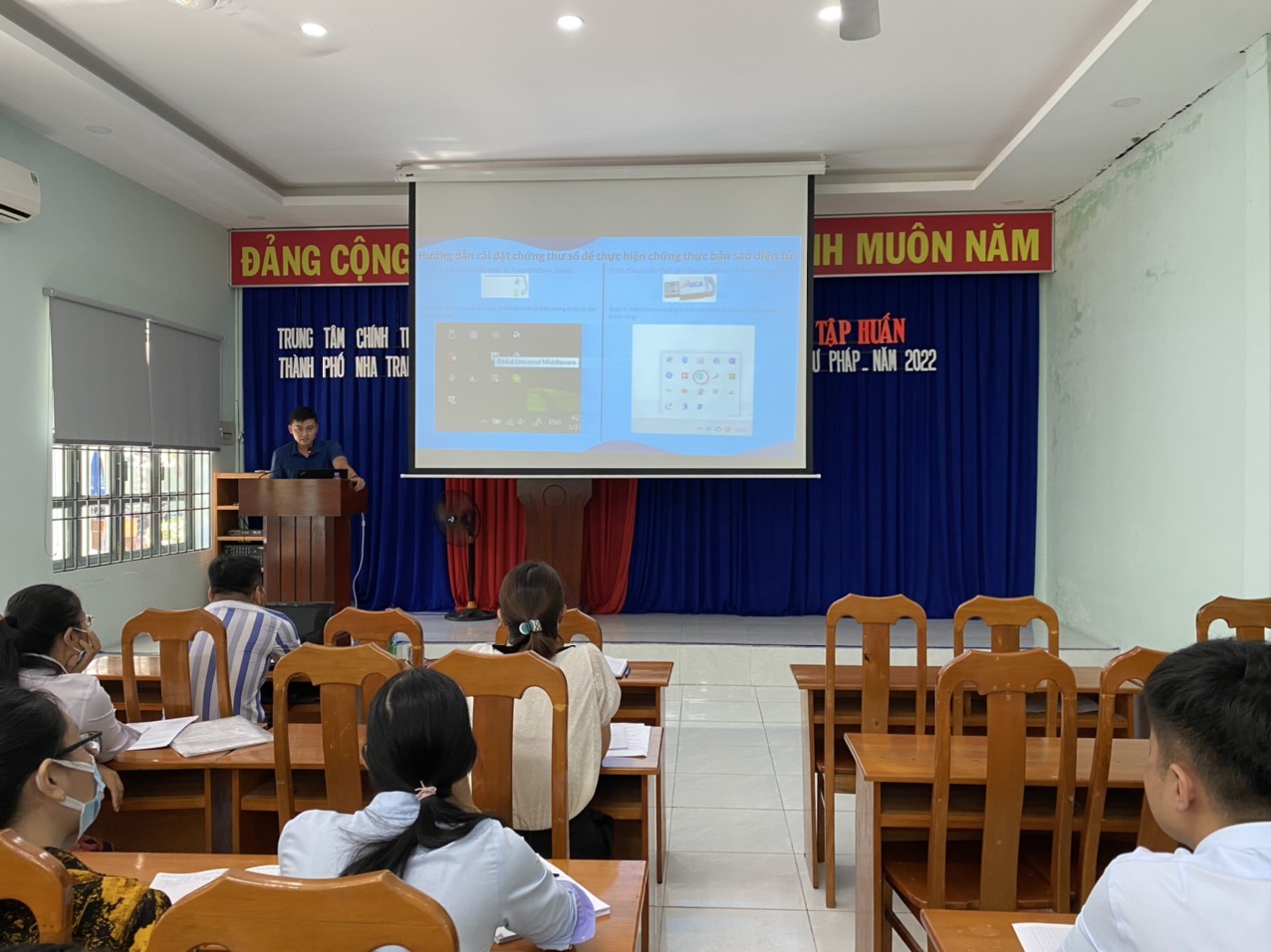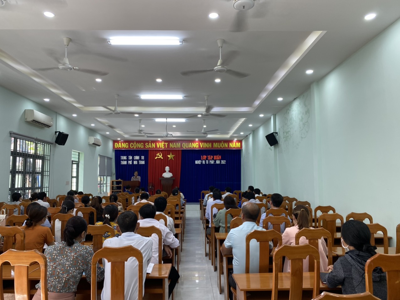 Ngày 10/6, UBND thành phố Nha Trang tổ chức lớp tập huấn nghiệp vụ tư pháp năm 2022 với nội dung chứng thực bản sao điện tử trên Cổng dịch vụ công quốc gia. Tham dự tập huấn có hơn 80 học viên là lãnh đạo, công chức tư pháp – hộ tịch, công chức văn phòng – thống kê của 27 xã, phường trên địa bàn thành phố.