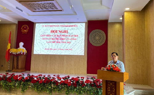 Sáng ngày 14/7/2022, Ủy ban nhân dân tỉnh Khánh Hòa đã tổ chức Hội nghị giới thiệu văn bản pháp luật mới cho cán bộ chủ chốt của tỉnh, lần thứ Hai năm 2022. Tham dự Hội nghị có 120 đại biểu là đại diện lãnh đạo các cơ quan trực thuộc Tỉnh ủy, Hội đồng nhân dân và Ủy ban nhân dân tỉnh, Lãnh đạo các Sở, ban, ngành, đoàn thể, các doanh nghiệp nhà nước, trường học thuộc tỉnh và lực lượng báo cáo viên pháp luật cấp tỉnh. Đồng chí Nguyễn Tấn Tuân – Phó Bí thư Tỉnh ủy – Chủ tịch UBND tỉnh cùng các đồng chí Lãnh đạo thường trực UBND tỉnh tham dự.