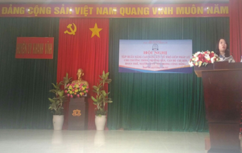 Nhằm góp phần nâng cao năng lực về trợ giúp pháp lý cho cán bộ cấp thôn, cán bộ chi hội đoàn thể và khảo sát về nhu cầu tiếp cận dịch vụ trợ giúp pháp lý của người dân, sáng ngày 03/11/2022, tại Hội trường Huyện ủy Khánh Vĩnh, Cục Trợ giúp pháp lý, Bộ Tư pháp tổ chức Hội nghị tập huấn nghiệp vụ trợ giúp pháp lý cho cán bộ địa phương.