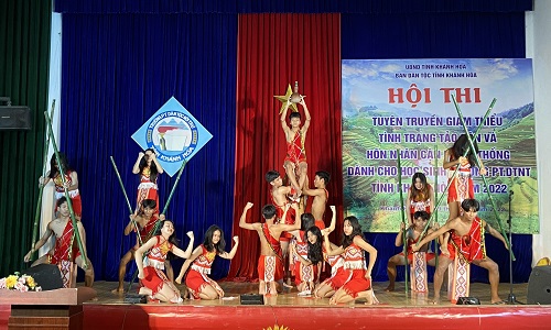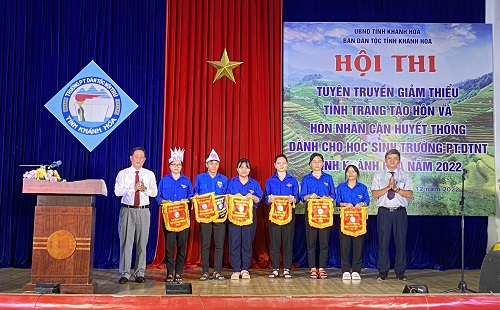 Ngày 09/12/2022, Ban Dân tộc tỉnh Khánh Hòa phối hợp với Sở Giáo dục và Đào tạo và Trường Phổ thông Dân tộc Nội trú tỉnh tiến hành tổ chức Hội thi tuyên truyền giảm thiểu tình trạng tảo hôn và hôn nhân cận huyết thống năm 2022. Đến dự có ông Võ Nam Thắng – Tỉnh ủy viên, Trưởng Ban Dân tộc tỉnh, ông Phạm Duy Khánh – Phó Trưởng Ban Dân tộc tỉnh, đại diện các đơn vị: Sở Giáo dục và Đào tạo, Sở Y tế và Ủy ban Mặt trận Tổ quốc Việt Nam tỉnh. Về phía Trường Phổ thông Dân tộc Nội trú tỉnh có sự tham dự của thầy Lê Biên Hải – Hiệu trưởng, các thầy, cô trong Ban Giám hiệu cùng các thầy, cô giáo và 300 em học sinh là người dân tộc thiểu số đang học tập tại trường.