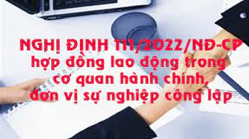 Ngày 30/12/2022, Chính phủ ban hành Nghị định số 111/2022/NĐ-CP về hợp đồng đối với một số loại công việc trong cơ quan hành chính và đơn vị sự nghiệp công lập (có hiệu lực từ ngày 22/02/2023) và bãi bỏ Nghị định số 68/2000/NĐ-CP ngày 17/11/2000. Theo đó, Nghị định số 111/2022/NĐ-CP quy định rõ các công việc thực hiện hợp đồng bao gồm: