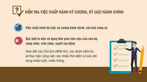 Theo Kế hoạch, đối tượng kiểm tra là các sở, ban, ngành, đơn vị cấp tỉnh; UBND các huyện, thị xã, thành phố; cán bộ, công chức, viên chức làm việc tại các sở, ban, ngành, đơn vị cấp tỉnh; UBND các huyện, thị xã, thành phố; các xã, phường, thị trấn.