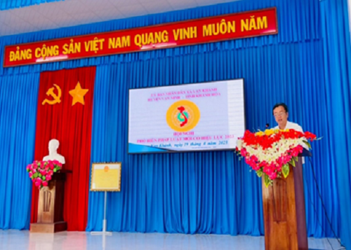 Thực hiện Kế hoạch phổ biến, giáo dục pháp luật năm 2023 trên địa bàn huyện Vạn Ninh (ban hành kèm theo Kế hoạch số 85/QĐ-UBND ngày 12/01/2023 của UBND huyện Vạn Ninh). Trong các ngày 19 và 25/4/2023, Phòng Tư pháp – Cơ quan Thường trực Hội đồng phối hợp phổ biến, giáo dục pháp luật huyện Vạn Ninh phối hợp Trung tâm Tư vấn pháp luật – Hội Luật gia tỉnh Khánh Hoà, UBND xã Vạn Khánh, xã Vạn Bình và thị trấn Vạn Giã tổ chức Hội nghị tuyên truyền, phổ biến giáo dục pháp luật cho người dân tại địa bàn.