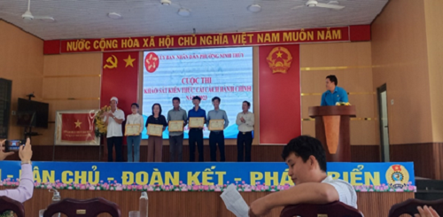 Thực hiện Kế hoạch số 07/KH-UBND ngày 12/01/2023 của UBND phường Ninh Thủy về công tác phổ biến, giáo dục pháp luật; hòa giải cở sở; xây dựng phường chuẩn tiếp cận pháp luật năm 2023; Quyết định số 04/QĐ-UBND ngày 30/01/2023 về ban hành Kế hoạch cải cách hành chính năm 2023 và Quyết định số 17/QĐ-UBND ngày 06/3/2023 về ban hành Kế hoạch tuyên truyền cải cách hành chính năm 2023. Sáng ngày 13/5/2023, UBND phường Ninh Thuỷ tổ chức Cuộc thi “khảo sát kiến thức cải cách hành chính” với sự tham gia của 12 tập thể/90 cá nhân đến từ các cơ sở giáo dục, tổ dân phố, các ban, ngành, đoàn thể và công chức, người hoạt động không chuyên trách làm việc tại Bộ phận tiếp nhận và trả kết quả. Cuộc thi nhằm tuyên truyền, nâng cao nhận thức của cán bộ, công chức, viên chức, người lao động trong các cơ quan hành chính nhà nước và Nhân dân trên địa bàn phường về mục đích, ý nghĩa, tầm quan trọng cũng như các chủ trương, chính sách của Trung ương, tỉnh, thị xã và địa phương về công tác cải cách hành chính, công tác chuyển đổi số, công tác triển khai Đề án 06 của Chính phủ; góp phần nâng cao ý thức, trách nhiệm của đội ngũ công chức, viên chức, người lao động các cơ quan trong việc phục vụ người dân, tổ chức, doanh nghiệp.