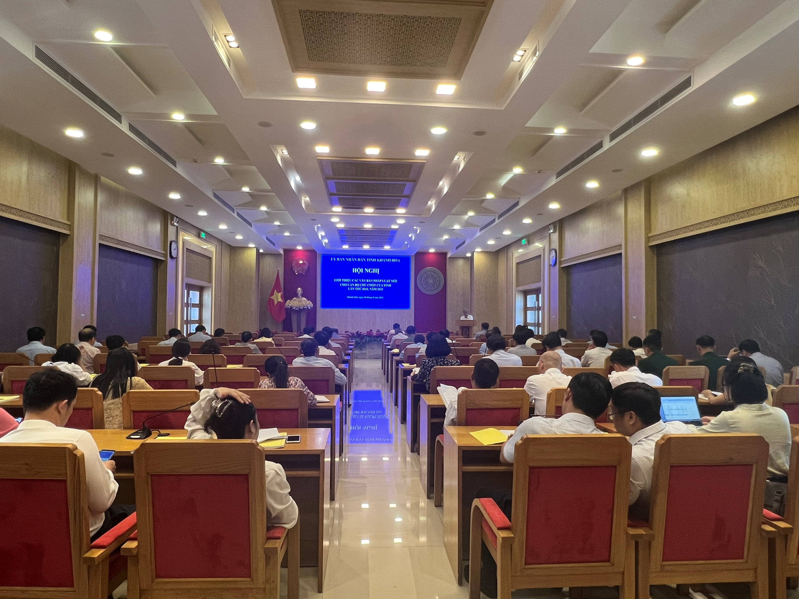 Chiều ngày 09/8/2023, Ủy ban nhân dân tỉnh Khánh Hòa đã tổ chức Hội nghị giới thiệu văn bản pháp luật mới cho cán bộ lãnh đạo của tỉnh, lần thứ Hai năm 2023. Tham dự Hội nghị có 130 đại biểu là đại diện lãnh đạo các cơ quan trực thuộc Tỉnh ủy, Hội đồng nhân dân và Ủy ban nhân dân tỉnh, Lãnh đạo các Sở, ban, ngành, đoàn thể, các doanh nghiệp nhà nước, trường học thuộc tỉnh và lực lượng báo cáo viên pháp luật cấp tỉnh. Dự Hội nghị có bà Phạm Thị Xuân Trang – Phó Chủ tịch HĐND tỉnh và ông Đinh Văn Thiệu, Tỉnh ủy viên, Phó Chủ tịch UBND tỉnh, Chủ tịch HĐPHPBGDPL tỉnh.