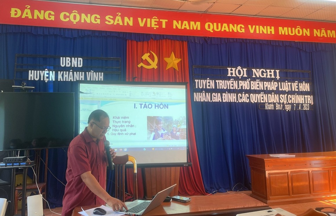 Ông Phan Văn Phương – Phó Trưởng phòng phụ trách Phòng Tư pháp huyện Khánh Vĩnh cho biết, ngay từ đầu năm, căn cứ chỉ đạo của UBND tỉnh tại Quyết định số 3661/QĐ-UBND ngày 30/12/2022, Hội đồng phối hợp PBGDPL huyện chỉ đạo Phòng Tư pháp – Cơ quan thường trực Hội đồng phối hợp thực hiện tốt công tác tham mưu UBND huyện trong công tác PBGDPL; củng cố, kiện toàn Hội đồng phối hợp phù hợp tình hình thực tế; tăng cường công tác đào tạo, bồi dưỡng đội ngũ báo cáo viên, tuyên truyền viên pháp luật cũng như việc định hướng nội dung, đổi mới hình thức, tăng cường các nguồn lực cho công tác PBGDPL; huy động các cấp, các ngành, đoàn thể và toàn dân tích cực tham gia vào công tác PBGDPL; đảm bảo công tác PBGDPL được thực hiện đồng bộ, toàn diện, phù hợp và hiệu quả.