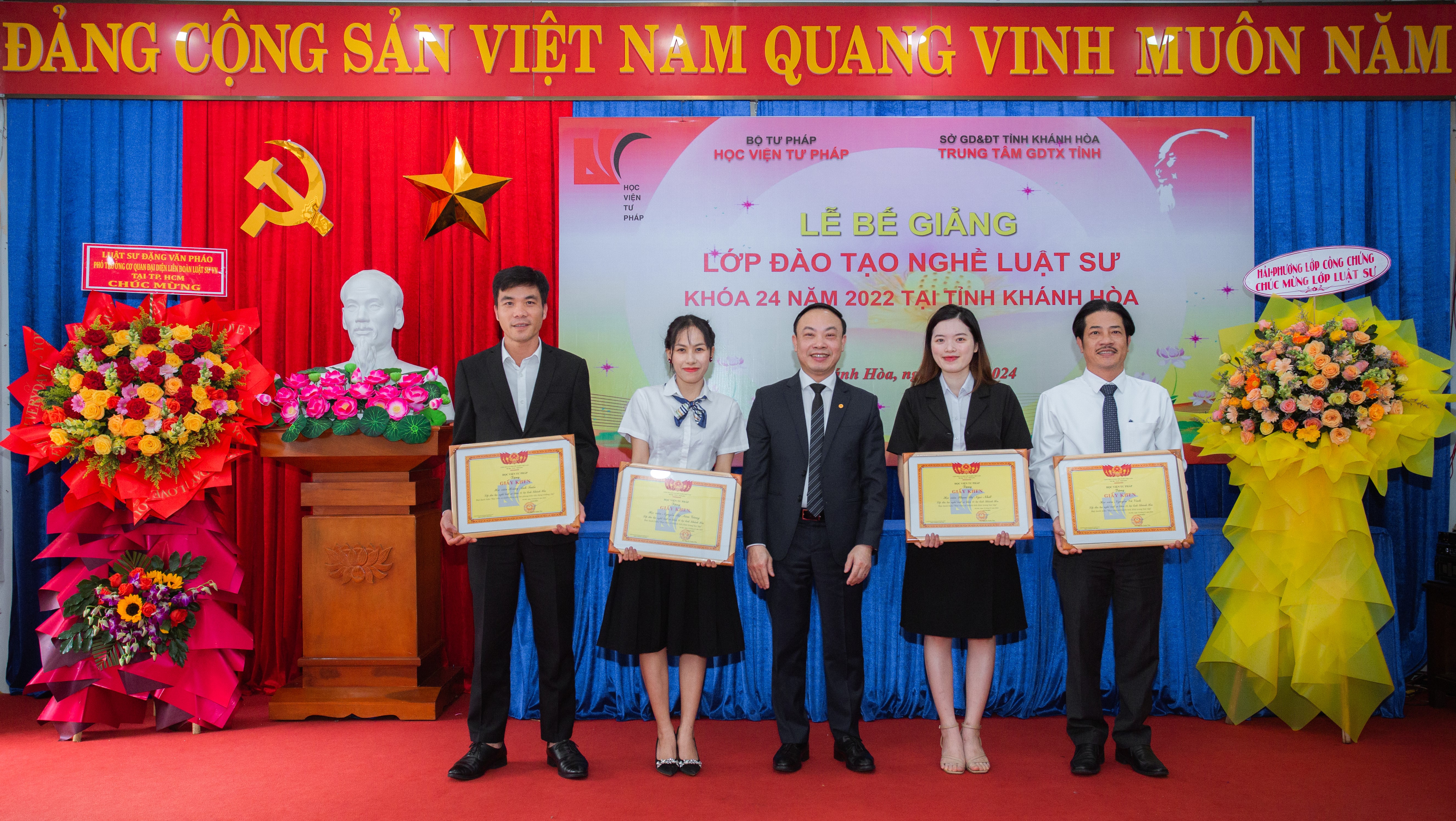 Ngày 27/01/2024, tại thành phố Nha Trang, Học viện Tư pháp (Bộ Tư pháp) đã phối hợp với Trung tâm Giáo dục thường xuyên tỉnh Khánh Hòa tổ chức Lễ bế giảng lớp đào tạo nghề luật sư khoá 24 - năm 2022 tại tỉnh Khánh Hòa.