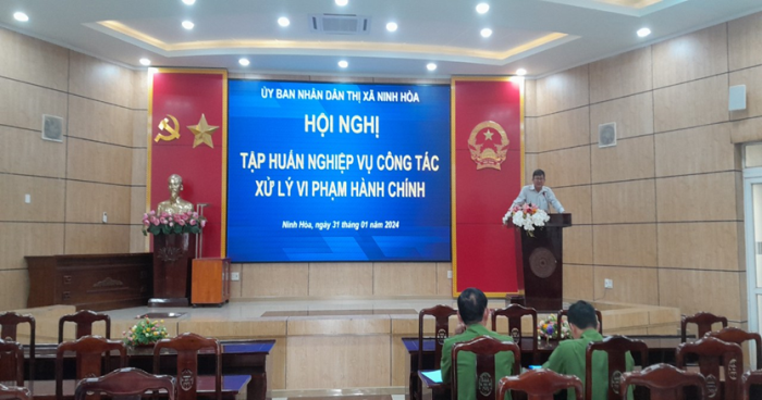 Thực hiện Kế hoạch số 1934/KH-UBND ngày 15/5/2023 của UBND thị xã Ninh Hòa. Sáng ngày 31/01/2024, UBND thị xã Ninh Hòa đã tổ chức Hội nghị tập huấn nghiệp vụ công tác xử lý vi phạm hành chính năm 2023