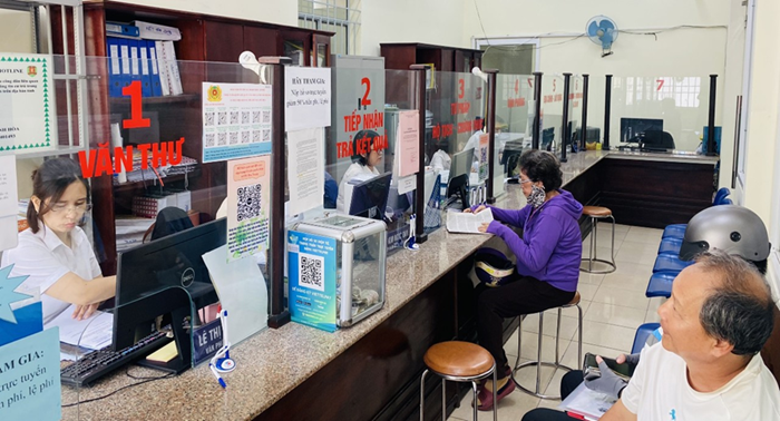 Ảnh: Tại Bộ phận một cửa tiếp nhận và giải quyết hồ sơ