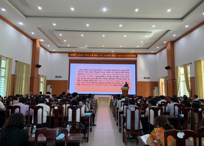Tại hội nghị, các đại biểu được nghe ông Nguyễn Xuân Hà, Giám đốc Trung tâm tư vấn pháp luật, Hội Luật Gia tỉnh Khánh Hòa giới thiệu, phổ biến các nội dung trọng tâm của Luật Đất đai năm 2024, Luật Kinh doanh bất động sản năm 2023.