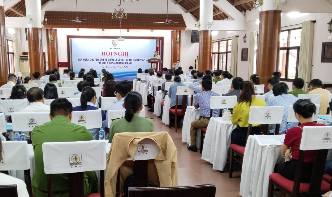 Quang cảnh Hội nghị tập huấn nghiệp vụ quản lý công tác thi hành pháp luật XLVPHC do Bộ Tư pháp tổ chức năm 2023