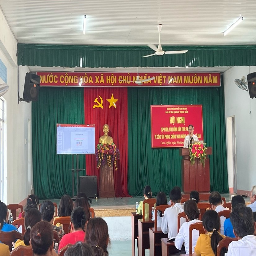 Thực hiện Kế hoạch số 2666/UBND-KH ngày 30/5/2024 của UBND thành phố Cam Ranh về việc tiếp tục thực hiện Đề án “Tăng cường phổ biến, giáo dục pháp luật tại địa bàn trọng điểm về vi phạm pháp luật” năm 2024 trên địa bàn thành phố Cam Ranh, chiều ngày 06/6/2024, phòng Tư pháp thành phố Cam Ranh phối hợp cùng UBND phường Cam Nghĩa tổ chức Hội nghị tập huấn, bồi dưỡng kiến thức pháp luật về công tác phòng chống tham nhũng, khiếu nại, tố cáo cho gần 100 tuyên truyền viên, hoà giải viên các tổ dân phố trên địa bàn.