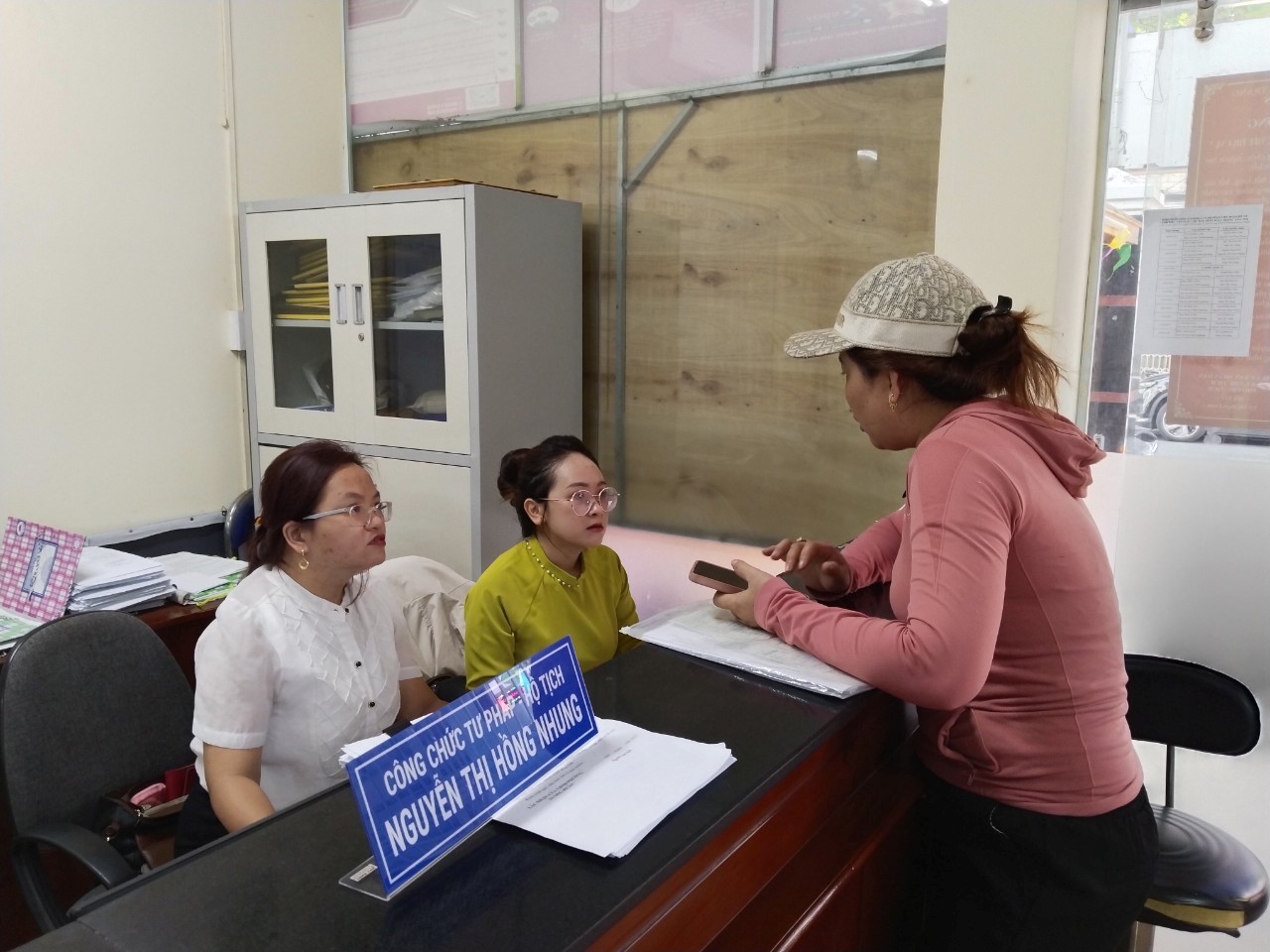 Công chức tư pháp – hộ tịch phường Xương Huân (tp.Nha Trang) hướng dẫn người dân làm thủ tục hộ tịch