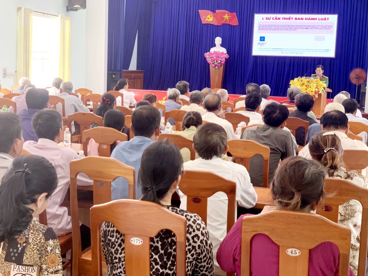 Tại hội nghị các đại biểu được nghe đồng chí Lương Lại Kim Thoa - Đội trưởng Đội cảnh sát Quản lý hành chính về trật tự xã hội Công an huyện - Báo cáo viên pháp luật huyện Vạn Ninh phổ biến những nội dung cơ bản của của Luật Căn cước, trong đó nhấn mạnh những điểm mới và quan trọng của Luật, những lợi ích, tiện ích của Căn cước gắn chíp; cách thức, phương pháp đăng ký, kích hoạt tài khoản định danh điện tử; những vấn đề liên quan đến sử dụng Căn cước và tài khoản định danh điện tử… quy định Cơ sở dữ liệu quốc gia về dân cư, Cơ sở dữ liệu căn cước; thẻ căn cước, căn cước điện tử; giấy chứng nhận căn cước; quyền, nghĩa vụ, trách nhiệm của cơ quan, tổ chức, cá nhân có liên quan, được áp dụng đối với công dân Việt Nam, người gốc Việt Nam chưa xác định được quốc tịch đang sinh sống tại Việt Nam; cơ quan, tổ chức, cá nhân có liên quan.