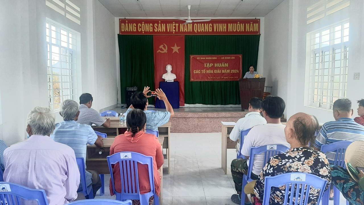 Chiều ngày 20/6/2024 vừa qua, UBND xã Ninh Lộc tổ chức Hội nghị tập huấn nghiệp vụ hòa giải cơ sở năm 2024 cho 35 hòa giải viên trên địa bàn theo Kế hoạch số 555/KH – UBND ngày 07/5/2024 của UBND xã Ninh Lộc.