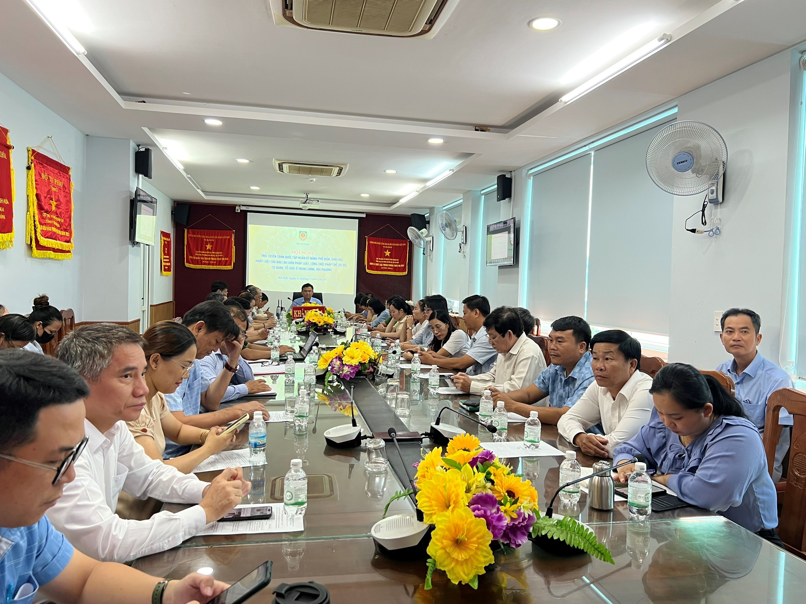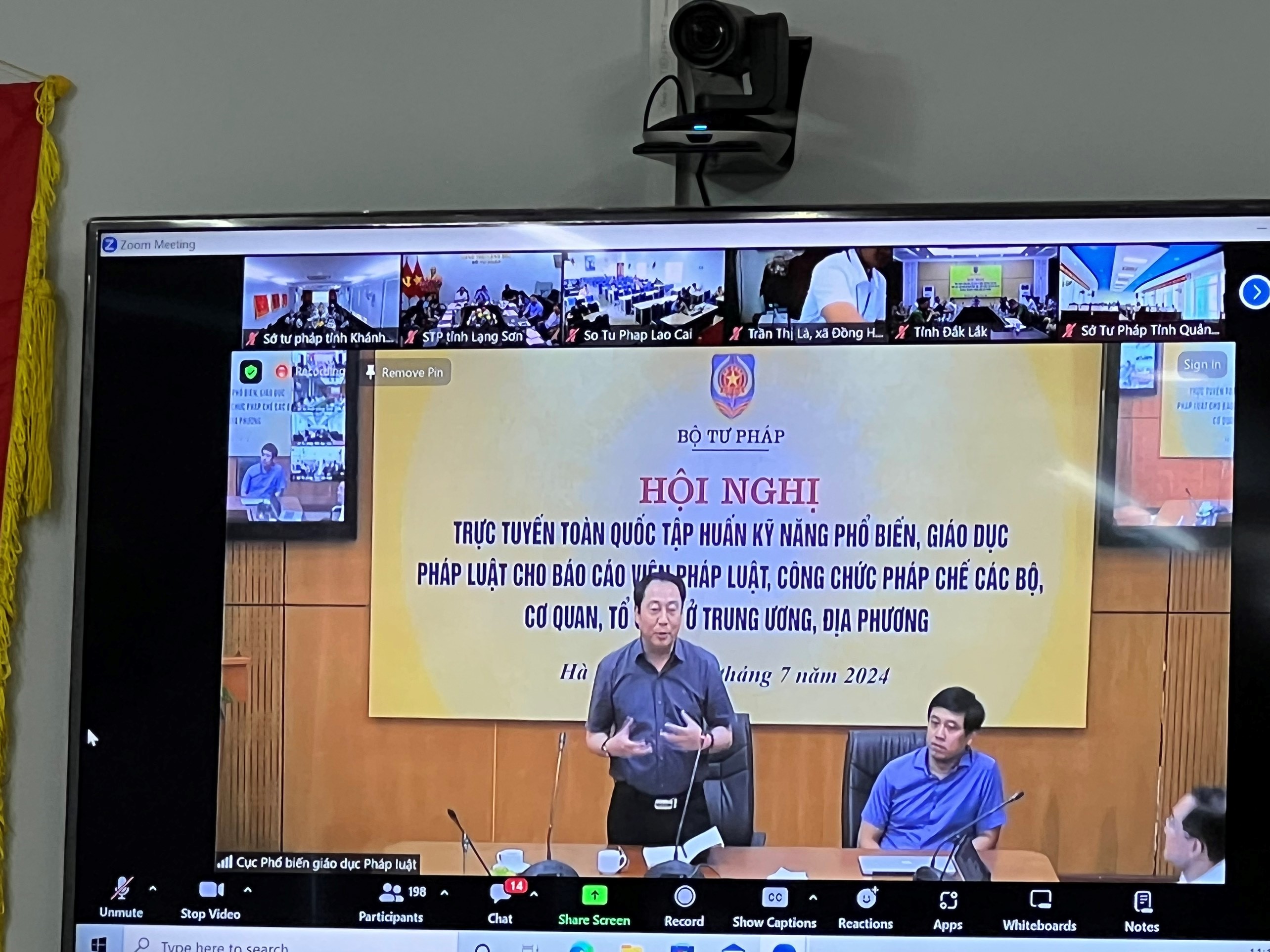Hội nghị trực tuyến kết nối 170 điểm cầu của các bộ, cơ quan, tổ chức ở trung ương, các tỉnh, thành phố trong phạm vi toàn quốc với số lượng gần 10.000 đại biểu tham dự. Tại điểm cầu tỉnh Khánh Hòa hơn 50 đại biểu tham dự là các báo cáo viên pháp luật cấp tỉnh, đại diện phòng tư pháp cấp huyện, đại diện Mặt trận Tổ quốc Việt Nam cấp tỉnh, cấp huyện và các tổ chức chính trị - xã hội tham dự; đồng chí Đặng Văn Khánh – Phó Giám đốc Sở Tư pháp chủ trì Hội nghị tại điểm cầu của tỉnh.