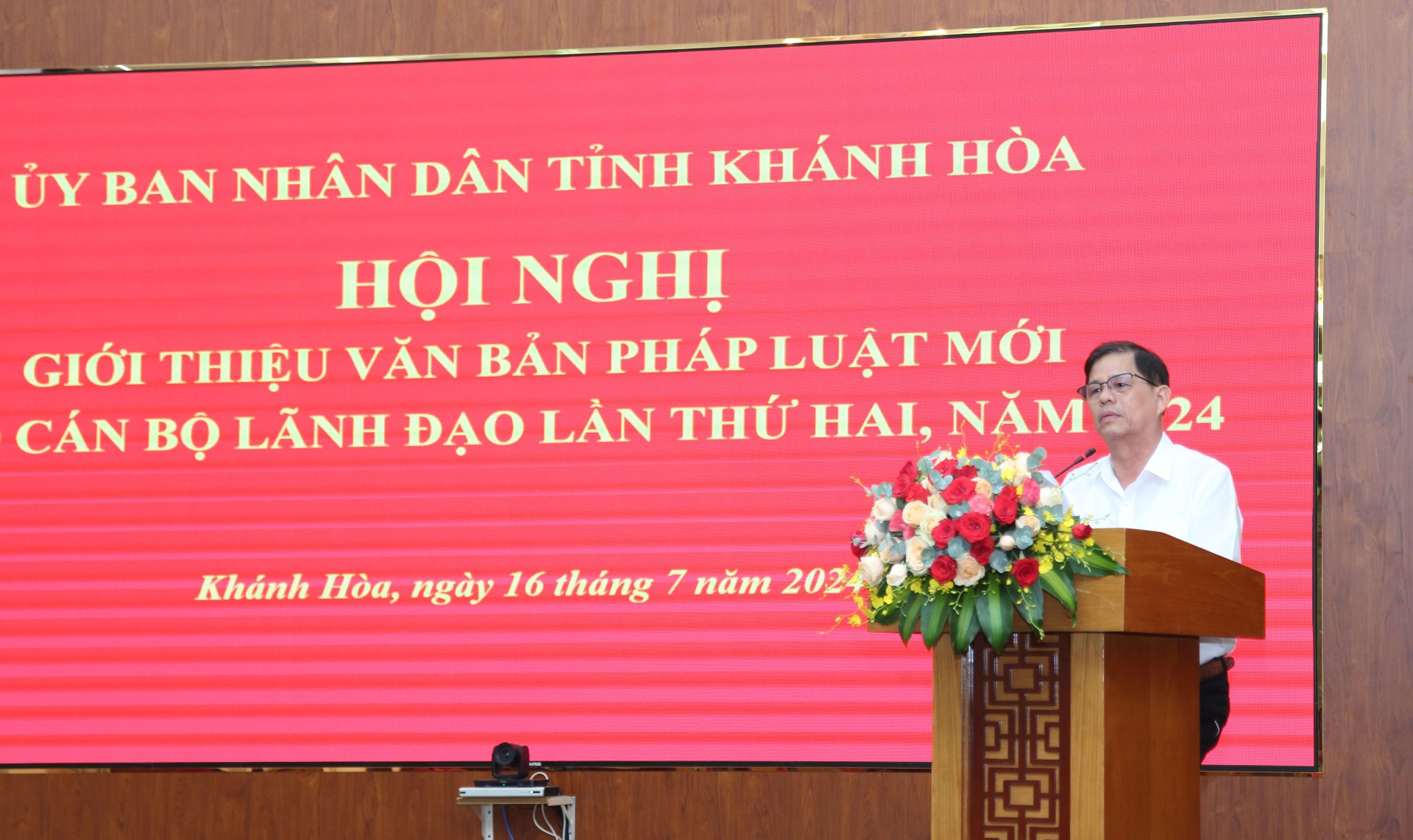 Chiều 16-7, UBND tỉnh Khánh Hòa tổ chức hội nghị giới thiệu văn bản pháp luật mới lần thứ 2 năm 2024 cho cán bộ lãnh đạo. Đồng chí Nguyễn Tấn Tuân - Phó Bí thư Tỉnh ủy, Chủ tịch UBND tỉnh dự và phát biểu chỉ đạo Hội nghị, dự hội nghị có đồng chí Lê Hữu Hoàng - Phó Chủ tịch Thường trực UBND tỉnh; đồng chí Phạm Thị Xuân Trang - Phó Chủ tịch HĐND tỉnh. Hội nghị được tổ chức theo hình thức trực tiếp và kết nối trực tuyến tới cấp huyện, thị xã, thành phố cho gần 500 cán bộ lãnh đạo tham dự.