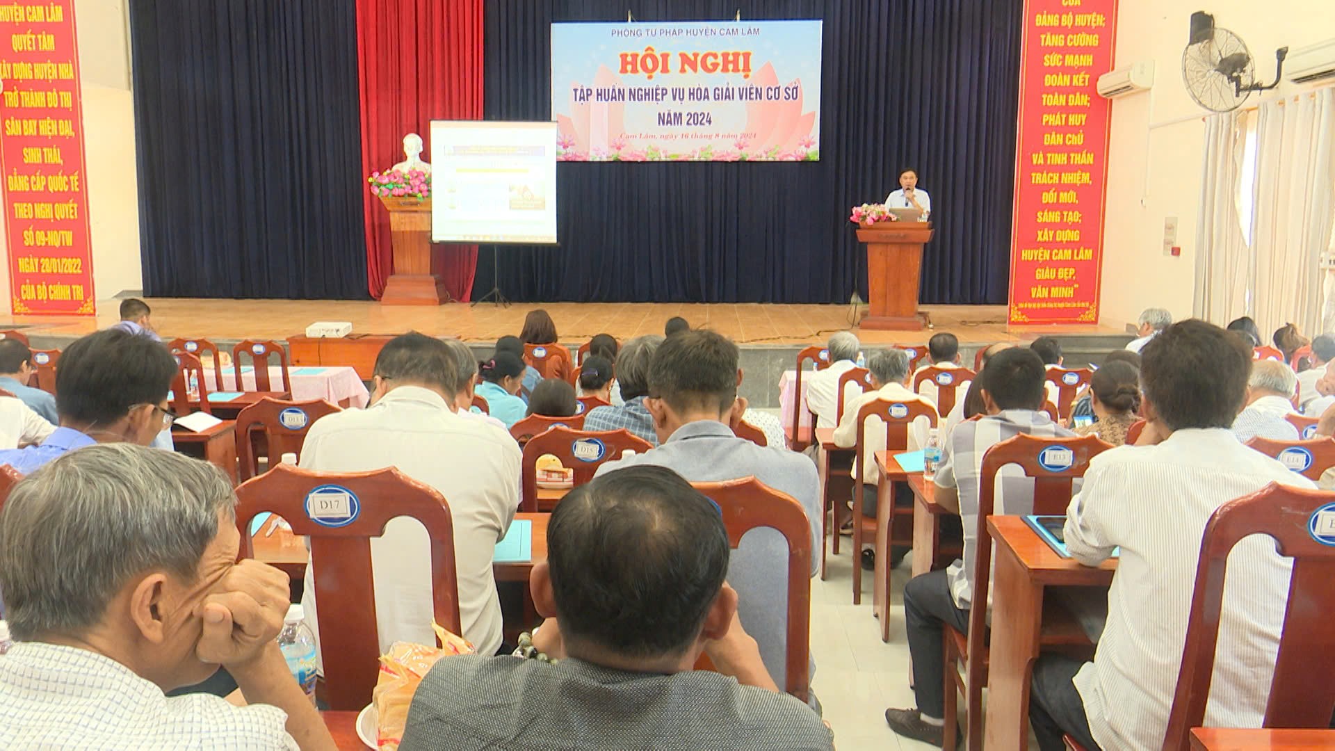 Sáng ngày 16/8/2024, Phòng Tư pháp huyện Cam Lâm tổ chức hội nghị tập huấn nghiệp vụ cho đội ngũ Hòa giải viên cơ sở trên địa bàn huyện năm 2024. Đồng chí Đặng Văn Khánh, Phó Giám đốc Sở Tư pháp tham dự và báo cáo tại hội nghị.