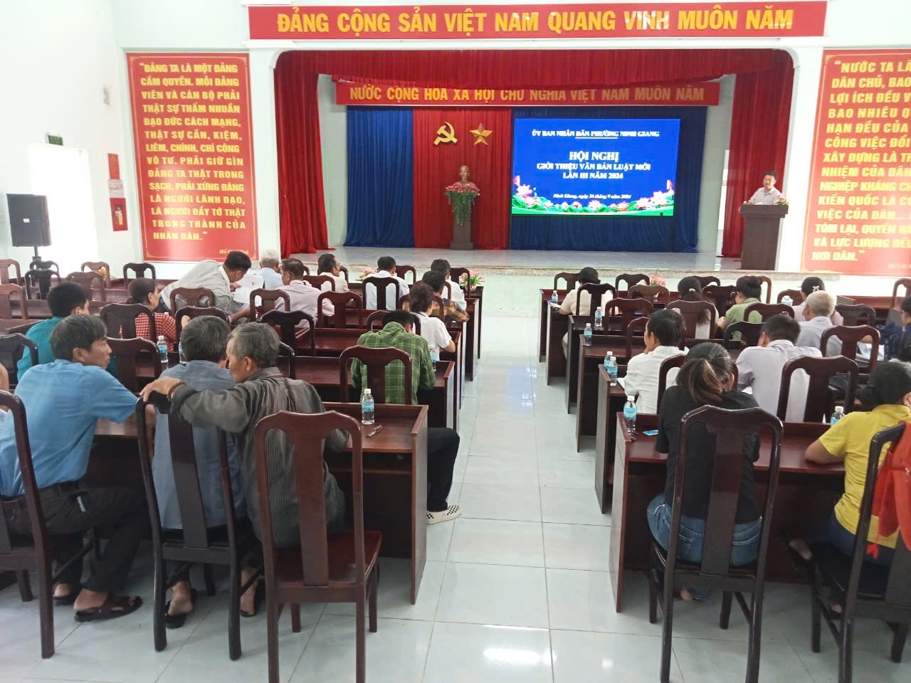 Sáng ngày 26/9/2024, UBND phường Ninh Giang tổ chức Hội nghị giới thiệu văn bản luật mới lần 3 năm 2024 cho gần 80 đại biểu là cán bộ, công chức, người hoạt động không chuyên trách, bí thư, tổ trưởng, trưởng ban công tác mặt trận, các chi hội các tổ dân phố, tuyên truyền viên pháp luật và 07 tổ hoà giải trên địa bàn phường.