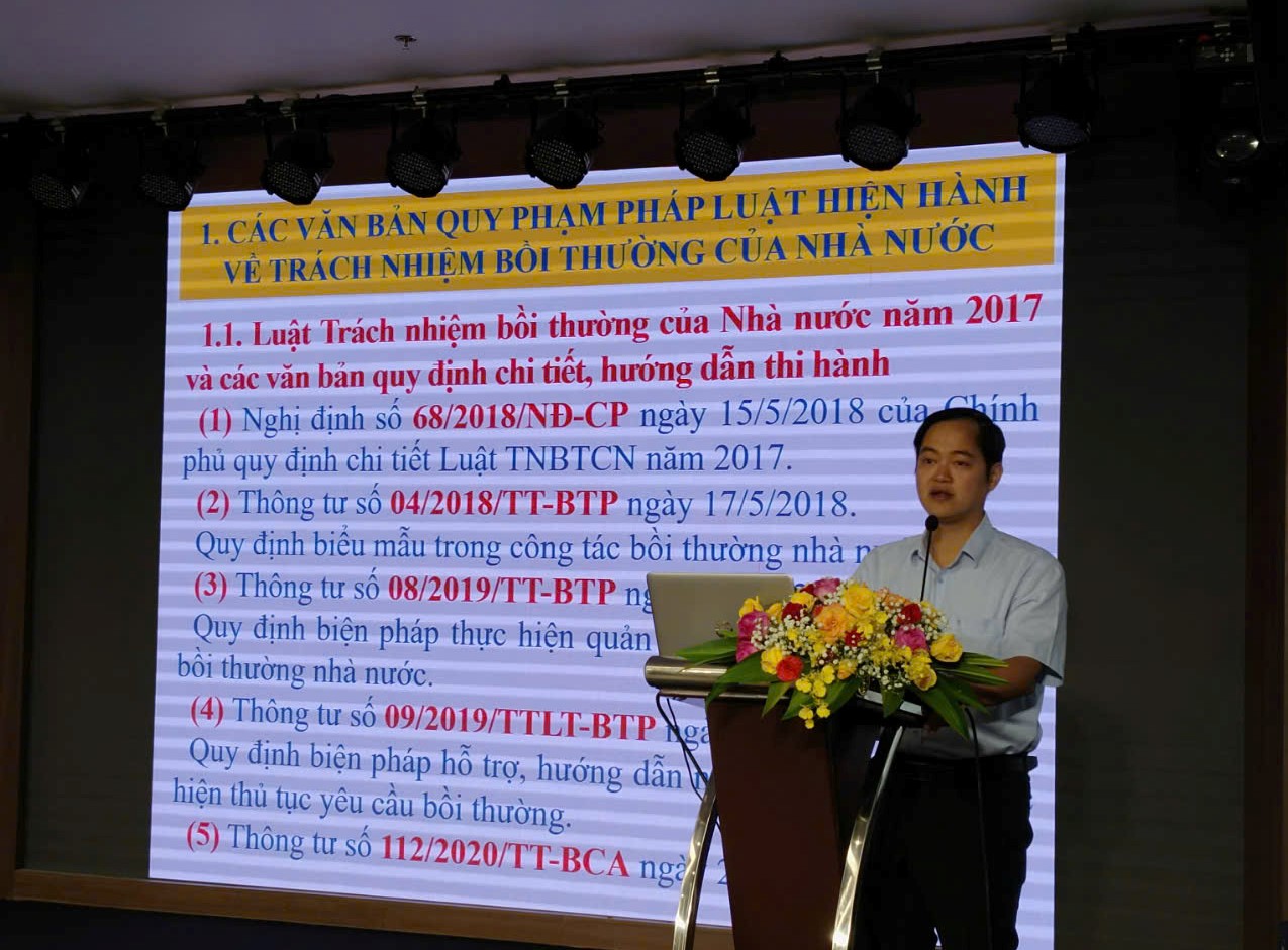 Tại Hội nghị, Phó Cục trưởng Cục Bồi thường nhà nước Lê Thái Phương đã truyền đạt những quy định của Luật Trách nhiệm bồi thường của Nhà nước và văn bản hướng dẫn thi hành, tập trung vào các vấn đề: cách thức giải quyết đối với một văn bản yêu cầu bồi thường; một số vấn đề về quyền yêu cầu bồi thường và quyền được bồi thường (cách thức yêu cầu bồi thường và giải quyết yêu cầu bồi thường); trình tự, thủ tục giải quyết yêu cầu bồi thường; thiệt hại và xác định thiệt hại được bồi thường; kinh phí bồi thường, xác định trách nhiệm hoàn trả của người thi hành công vụ gây thiệt hại; quản lý nhà nước về công tác bồi thường nhà nước.
