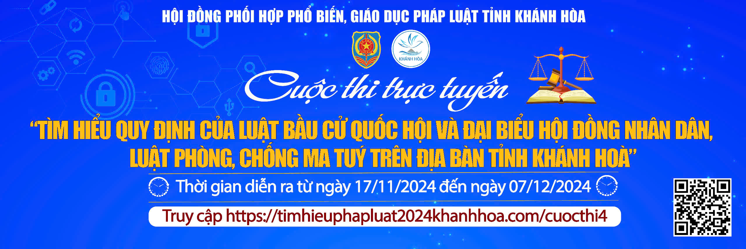 Thực hiện Kế hoạch số 2182/KH-HĐPH ngày 07/11/2024 và Kế hoạch số 2183/KH-HĐPH ngày 07/11/2024 của Hội đồng phối hợp phổ biến, giáo dục pháp luật tỉnh Khánh Hòa về việc tổ chức các Cuộc thi trực tuyến tìm hiểu quy định pháp luật; đồng thời, hưởng ứng Ngày Quốc tế phòng, chống tham nhũng (09/12) và với mục đích tuyên truyền, phổ biến rộng rãi các quy định của quy định của Luật Phòng, chống tham nhũng 2018, Luật Trách nhiệm bồi thường của Nhà nước 2017, Luật Bầu cử đại biểu Quốc hội và đại biểu Hội đồng nhân dân 2015, Luật Phòng, chống ma túy 2021 góp phần nâng cao nhận thức, ý thức chấp hành, tìm hiểu pháp luật của cán bộ, công chức, viên chức và đặc biệt là đối tượng đoàn viên, thanh niên, học sinh, sinh viên và Nhân dân trên toàn tỉnh.