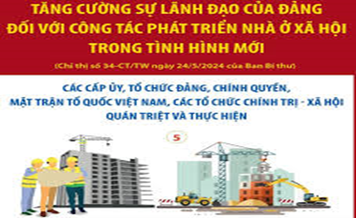 Ngày 18/12/2024, Tỉnh ủy Khánh Hòa ban hành Kế hoạch số 243-KH/TU ngày 18/12/2024 về thực hiện Chỉ thị số 34-CT/TW ngày 24/5/2024 của Ban Bí thư về tăng cường sự lãnh đạo của Đảng đối với công tác phát triển nhà ở xã hội trong tình hình mới. Theo đó, Kế hoạch số 243-KH/TU đề ra một số nhiệm vụ và giải pháp như sau: