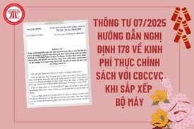 Ngày 24/01/2025, Bộ trưởng Bộ Tài chính ban hành Thông tư số 07/2025/TT-BTC hướng dẫn việc xác định nguồn kinh phí và việc lập dự toán, quản lý, sử dụng và quyết toán kinh phí thực hiện chính sách quy định tại Nghị định số 178/2024/NĐ-CP ngày 31/12/2024 của Chính phủ về chính sách, chế độ đối với cán bộ, công chức, viên chức, người lao động và lực lượng vũ trang trong thực hiện sắp xếp tổ chức bộ máy của hệ thống chính trị. Theo đó, Thông tư số 07/2025/TT-BTC quy định nguồn kinh phí thực hiện chính sách, chế độ đối với cán bộ, công chức; cán bộ, công chức cấp xã; lực lượng vũ trang và người lao động (trừ người lao động trong đơn vị sự nghiệp công lập):