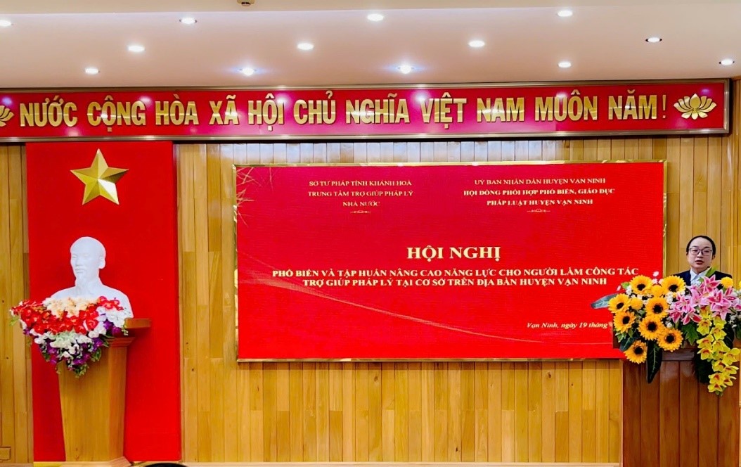 Sáng 19/3/2025, Phòng Tư pháp – Cơ quan Thường trực Hội đồng phối hợp phổ biến giáo dục pháp luật huyện Vạn Ninh phối hợp Trung tâm Trợ giúp pháp lý nhà nước tỉnh Khánh Hoà tổ chức Hội nghị phổ biến và tập huấn nâng cao năng lực cho người làm công tác trợ giúp pháp lý tại cơ sở trên địa bàn huyện Vạn Ninh, với 99 đại biểu tham dự.