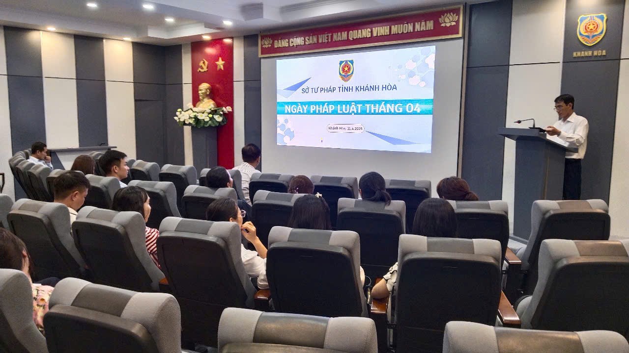 Chiều 21/4/2025, Sở Tư pháp tổ chức sinh hoạt Ngày pháp luật tháng 4 cho toàn thể công chức, viên chức và người lao động của các phòng, trung tâm thuộc Sở. Cùng dự buổi sinh hoạt có các đồng chí Lý Nguyễn Nguyên Vũ, Tỉnh ủy viên, Giám đốc Sở Tư pháp; Đặng Văn Khánh –Phó Giám đốc Sở Tư pháp.