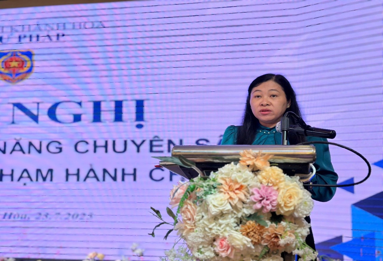 (Bà Nguyễn Thụy Thanh Yên, Phó Giám đốc Sở Tư pháp phát biểu khai mạc Hội nghị)