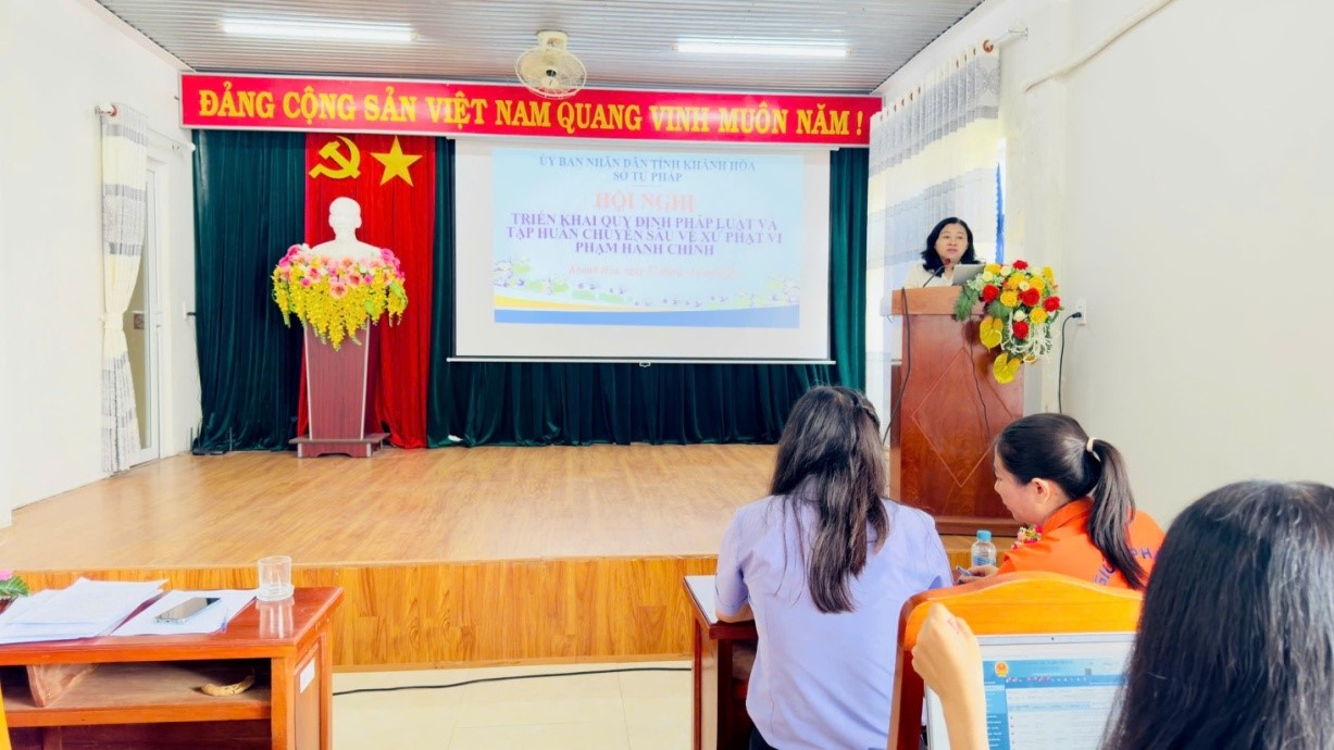 Ngày 17/04, Sở Tư pháp tỉnh Khánh Hòa tổ chức Hội nghị triển khai quy định pháp luật về xử lý vi phạm hành chính và tập huấn chuyên sâu về xử lý vi phạm hành chính tại khu vực Nam Khánh Hòa; tham dự Hội nghị có bà Nguyễn Thụy Thanh Yên – Phó Giám đốc Sở Tư pháp Khánh Hòa, báo cáo viên pháp luật tỉnh.