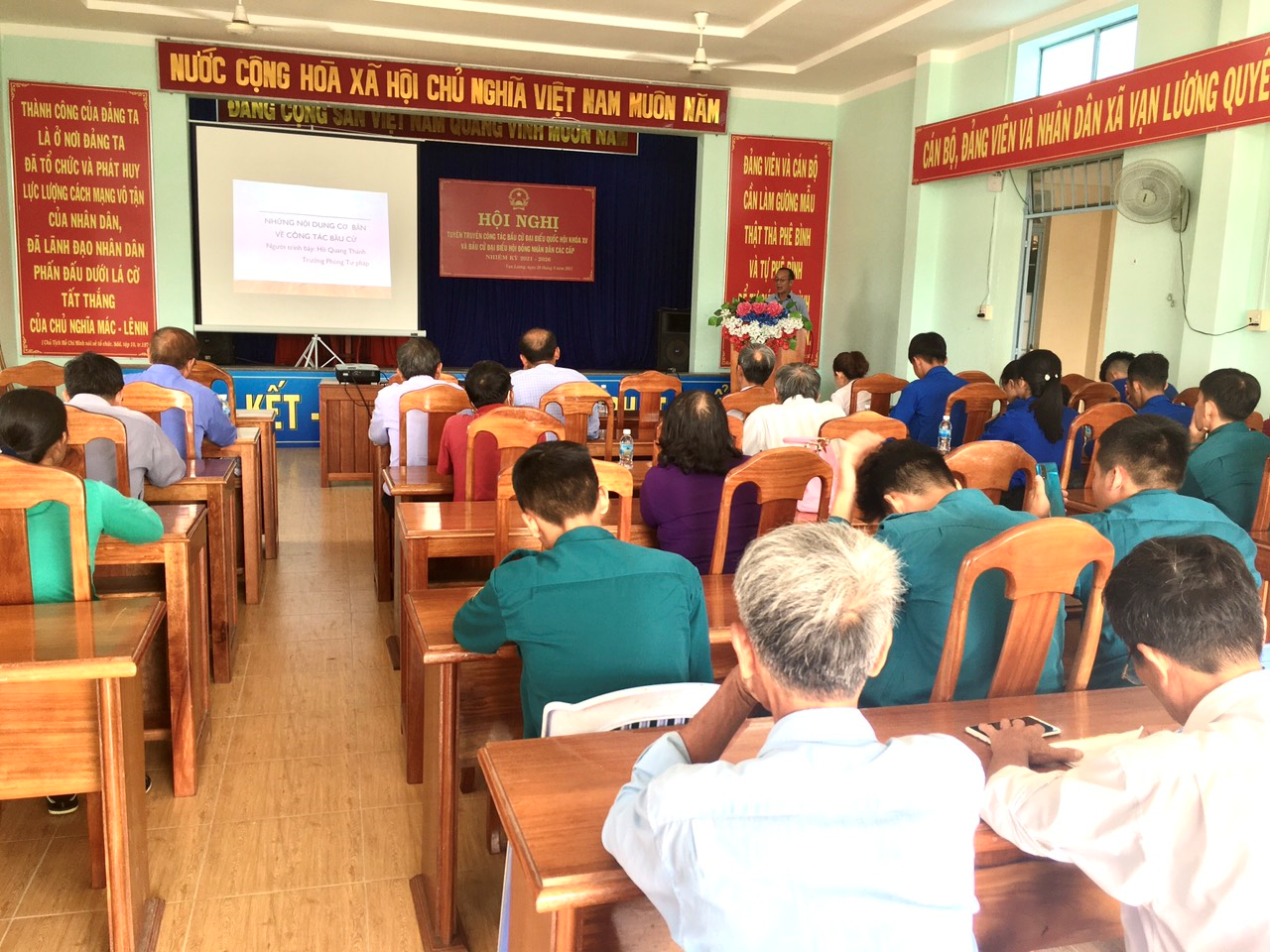 Hội nghị được nghe ông Hồ Quang Thành  – Báo cáo viên, Trưởng phòng Tư pháp huyện Vạn Ninh phổ biến một số nội dung quan trọng của công tác bầu cử như: Những chế định trong công tác bầu cử được quy định trong Hiến pháp năm 2015; Luật Bầu cử đại biểu Quốc hội và đại biểu hội đồng nhân dân; Luật Tổ chức Quốc hội năm 2015; Luật Tổ chức chính quyền địa phương... Đồng thời tuyên truyền, phát động Thể lệ số 610/TL-BTC, ngày 08/3/2021 của Bộ Tư pháp về Cuộc thi trực tuyến “Tìm hiểu pháp luật về bầu cử đại biểu Quốc hội và đại biểu Hội đồng nhân dân”.