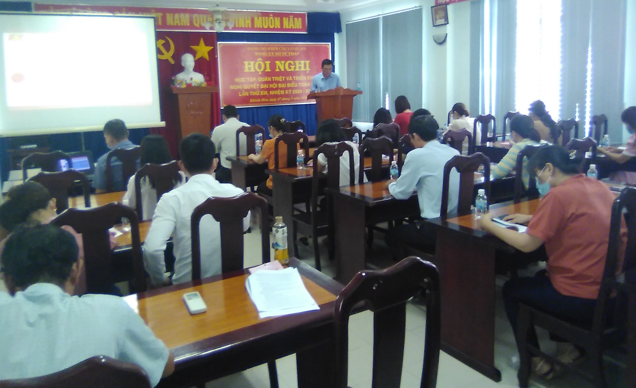 Triển khai thực hiện Kế hoạch số 17-KH/ĐUK ngày 27/4/2021 của Đảng ủy Khối các cơ quan tỉnh về việc nghiên cứu, học tập, quán triệt, tuyên truyền và triển khai Nghị quyết Đại hội đại biểu toàn quốc lần thứ XIII của Đảng, trong 02 ngày 07 và 08/5/2021, Đảng ủy Sở Tư pháp đã tổ chức Hội nghị quán triệt các văn kiện Đại hội đại biểu toàn quốc lần thứ XIII của Đảng cho toàn thể công chức, viên chức và người lao động của Sở. Đồng chí Đặng Văn Khánh – Phó Bí thư Đảng ủy, Phó Giám đốc Sở, báo cáo viên Tỉnh ủy chủ trì Hội nghị. Đồng chí Hồ Xuân Đức – Phó Trưởng ban Ban Tuyên giáo Đảng ủy Khối các cơ quan tỉnh dự khai mạc và chỉ đạo Hội nghị.