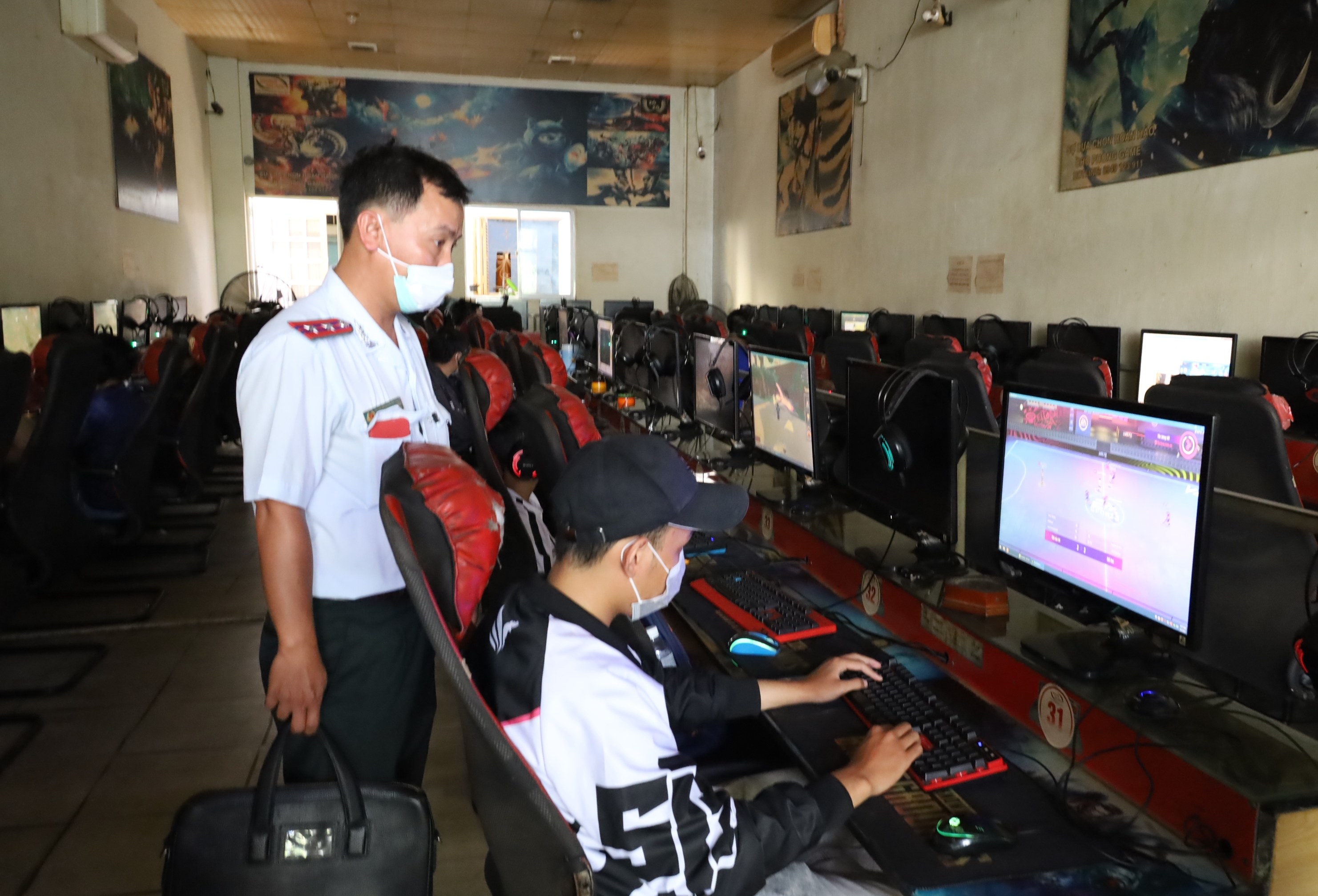 Ảnh: Thanh tra Sở Thông tin và Truyền thông kiểm tra hoạt động cung cấp dịch vụ game tại một cơ sở kinh doanh trên địa bàn tỉnh