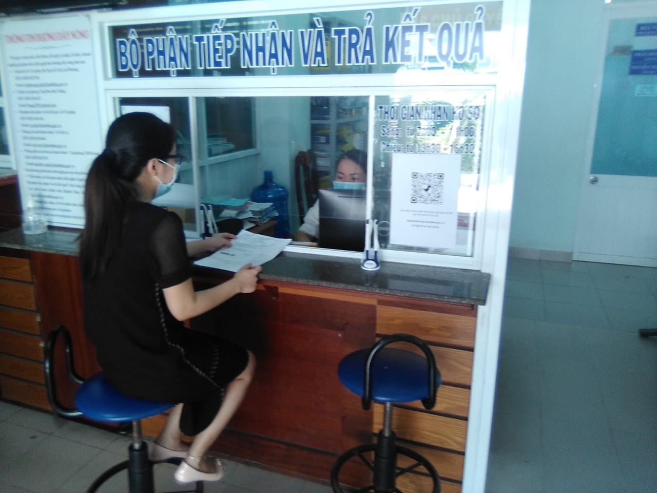 Ảnh: Mã QR code được niêm yết tại vị trí thuận lợi ở bộ phận một cửa Sở Tư pháp